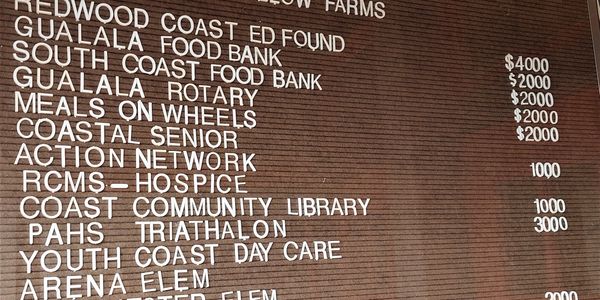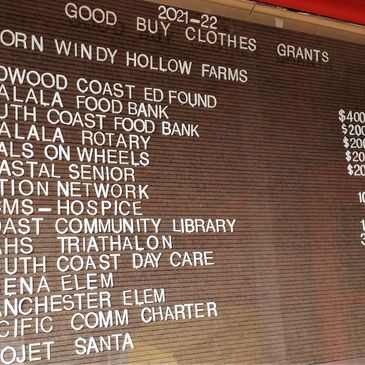Profits from the monthly sales are given to charities of the Southern Mendocino Coast. Over $580,000 has been donated sine our founding in 1994.